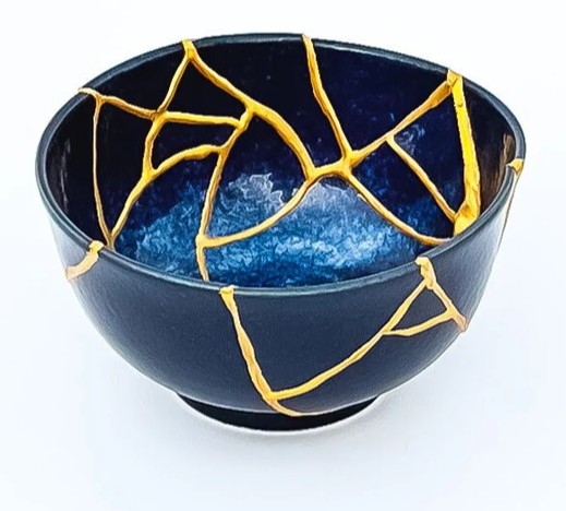 Kennen Sie Kintsugi? Es handelt sich dabei um eine traditionelle japanische Reparaturmethode für Keramik oder Porzellan. Anstatt den Bruch zu verstecken, wird er bewusst hervorgehoben und die Bruchlinien werden mit Gold veredelt.
